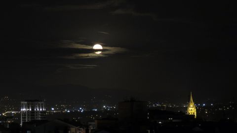 La pasada jornada, después de una noche clara de luna llena, la cuenta de la estación meteorológica compartió una imagen que sedujo a muchos en las redes sociales por el precioso panorama del satélite sobre la ciudad, apenas iluminada la torre de la catedral y el edificio de La Jirafa en el centro urbano.