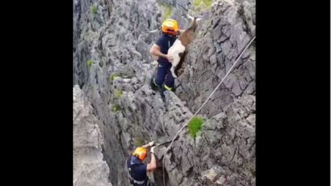 Tras el aviso, dos bomberos bajaron hasta el acantilado para rescatar a la cabra, que agradeció con un balido de alivio pisar tierra tras ser izada por uno de ellos. «Mejor usar sendas y caminos habituales y evitar sorpresas», escriben en el perfil de Bomberos de Asturias, aconsejando de paso a quienes puedan verse en la misma situación que la pequeña cabra, que de seguro que se quedó con la «Lección aprendida»
