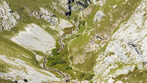 Un ejemplo que ha despertado enorme polémica en redes sociales es la instantánea de unos padres descendiendo por el canal del Texu, en Bulnes, en plena zona de montaña con una silla de bebé.