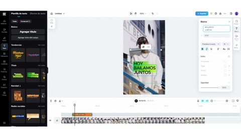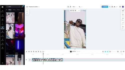 En la barra lateral izquierda encontrarás los menús generales para trabajar con tus vídeos de TikTok, y, al pulsar sobre cualquiera de las opciones, podrás acceder a todos los materiales dispuestos por esta plataforma para que crees tus vídeos o retoques tus imágenes. Al pulsar sobre cualquier elemento aparecerá en la pantalla de edición, y aquí podrás desplegar el menú con todas las demás opciones de personalización y ajuste.