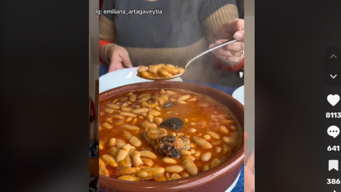 Pero lo que le pasó a continuación fue aún más sorprendente. A Emiliana le sirvieron la fabada de una manera «inesperada». «Inocente de mí, pensé: saca la palangana para servir uno en cada plato y se va para la cocina. No. Deja la olla en el medio de la mesa para que te sirvas las veces que quieras y te dice: no, no, si se acaba, hay más», cuenta sorprendida. «Otra cosa que me llamó mucho la atención es que vos pedís vino y te traen la botella entera y una flauta de pan para que no te falte. Entonces, una palangana de guiso, una botella de vino y una flauta de pan, ese es el primer nivel», añade.
