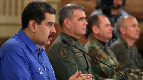 Desde el Palacio de Miraflores y en su primera comparecencia desde que el autoproclamado mandatario interino, Juan Guaidó, iniciara ayer la llamada operación Libertad para derrocar al Gobierno chavista, Maduro ha asegurado en un discurso transmitido en cadena obligatoria de radio y televisión que Guaidó junto al opositor Leopoldo López han «engañado» junto a un «grupito» de «traidores» a los uniformados de la base aérea de La Carlota, a las afueras de Caracas.