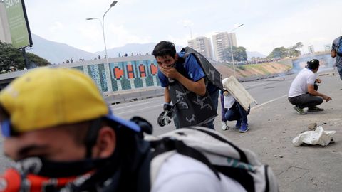 En los alrededores de la base aérea militar La Carlota manifestantes encapuchados se han enfrentado durante más de tres horas con agentes de la fuerza pública que han accionado sus armas en numerosas ocasiones. La Guardia Bolivariana ha desplegado varias tanquetas.
