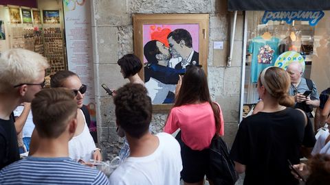 El artista urbano TVBoy ha plasmado hoy en una pared del centro de Barcelona su última obra, que muestra al presidente en funciones, Pedro Sánchez, y al líder de Unidas Podemos, Pablo Iglesias, fundiéndose en un beso. El grafiti ha aparecido en la pared de una calle próxima a la plaza de Sant Jaume de Barcelona horas antes de que se iniciara en el Congreso la segunda votación de la investidura de Pedro Sánchez.