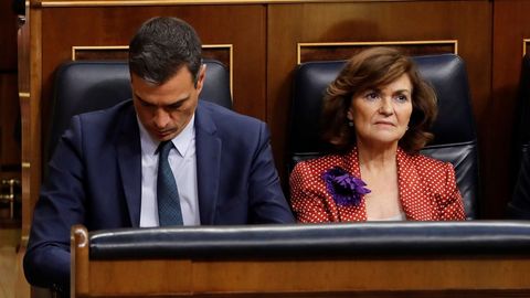 Pocas declaraciones a las puertas de Ferraz. La primera en llegar fue la vicepresidenta del Gobierno, Carmen Calvo, que dijo sentirse «muy decepcionada» por la falta de acuerdo con Podemos. En concreto, Calvo ha hecho un llamamiento a la formación morada para que «abra la investidura al único presidente posible».