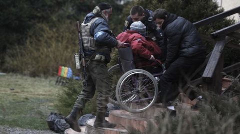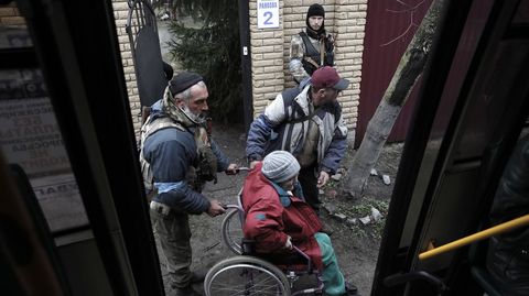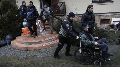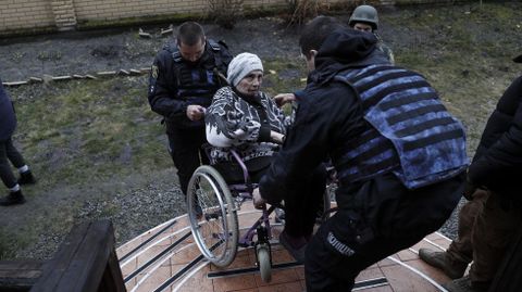 Las imágenes de Atef Safadi muestran la evacuación de personas mayores que permanecían en un refugio de Irpín desde que empezó la invasión rusa en Ucrania.
