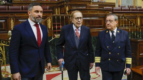 Tras la votación de la moción de censura, que ha sido derrotada por 201 votos frente a los 52 de Vox y uno del exdiputado de Ciudadanos Pablo Cambronero, Tamames se ha quedado sentado durante unos minutos en el escaño que para la cita le ha cedido Abascal.