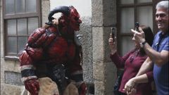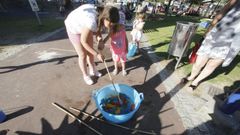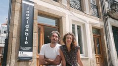 Jacobo Ameneiro y Carlota Pérez, delante de Inoxidable, el local situado al lado de la colegiata que inauguran en unos días convertido en un centro de creación artística para niños y adultos