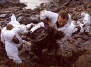 La flota de la zona sur de la comarca salió en busca de manchas por primera vez desde el pasado lunes El temporal concedió un respiro a los marineros de la Costa da Morte y la mayor parte de la flota lo aprovechó para volver a hacerse a la mar para recoger chapapote. Las barcas llevaban amarradas a puerto casi una semana. El negro botín de ayer rondó las tres toneladas. De todas maneras, el temporal impidió abandonar el puerto a las embarcaciones de la zona Este de la Costa da Morte: Laxe, Malpica y Caión.