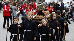 Vecinos de Campo de Urraca organizaron este jueves un desfile en el que alrededor de 200 niños portaron réplicas de santos, tocaron tambores o lucieron mantillas