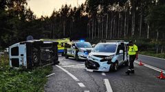 Uno de los carriles en sentido Vigo está cortado desde las tres de la madrugada para trasladar a una treintena de reses desde el camión siniestrado a otros dos