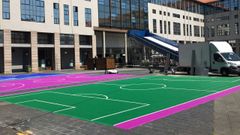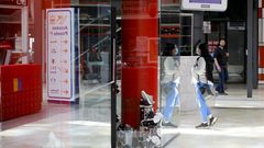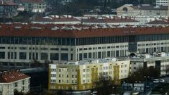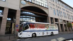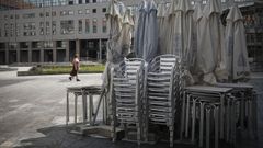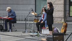 Praza de Europa de Área Central, los bomberos comienzan una gira por distintas zonas de Santiago con plataforma elevadora para hacer un homenaje musical a los vecinos por el confinamiento. Pandemia Coronavirus