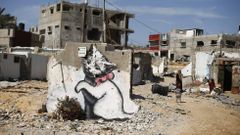 Sobre los muros de escombros varias obras del artista conocido como Banksy. No son las calles de ninguna ciudad británica, es la franja de Gaza. Hace ahora tres meses el grafitero cruzó a través de los túneles para entrar y pintar varias obras. Un gato jugando con una bola de metralla o varios niños columpiándose sobre una torre de vigilancia. Este residente explica cómo le ayudaron. Hablaron sobre su apoyo a Palestina y sobre cómo Banksy quiere denunciar el sufrimiento de este pueblo con sus dibujos. A través de las redes sociales anunció su viaje e incluso publicó un video del mismo. La franja de Gaza ha sido durante este verano escenario de duros bombardeos por parte del Ejército de Israel y necesita ayuda urgente para su reconstrucción