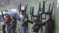 27 oct 2020 Ingenio fisterrán frente a la lluvia y las nuevas normas anticovid Muchos aficionados usaron las sillas supletorias como paraguas Melissa Rodríguez