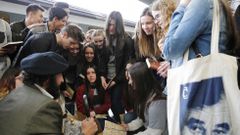 19 may 2017 A obra de Carlos Casares viaxa en tren para achegarse a toda Galicia Alumnos do IES de Arzúa distribuíron exemplares do autor na estación de Ourense cándida andaluz