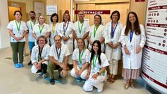 Pacientes, socios y trabajadores de la AECC participaron en un acto simbólico en los Soportales de A Ferrería en el día mundial de la enfermedad