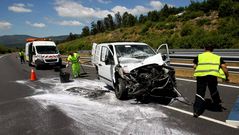 El vehículo con el que apagaba un fuego en Ponteareas se despeñó y ardió. El fuego quemó 180 hectáreas y tuvo dos focos, lo que apunta a su intencionalidad