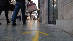 Las asociaciones de defensa de la ruta critican al Concello por no orientar a los peregrinos por el itinerario portugués de la costa mientras afloran pintadas erróneas por la calle del Príncipe