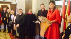 07 feb 2015 La mezzosoprano Nuria Lorenzo le canta al alcalde «Oiga usted, caballero» La vocalista interpretó el tema tras recibir el premio Galegas Destacadas que concede el colectivo Diálogos 90 B.R. Sotelino