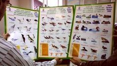 Unas láminas de gran tamaño identifican con ilustraciones en color sesenta aves de la ensenada de O Vao «¿Papá, mamá, como se llaman estos pájaros?». Es tal vez una de las preguntas sin respuesta que con más se han escuchado en la ensenada marina de O Vao, ese paraíso de aves lindante con A Lanzada, donde una delgada tira de tierra y dunas separa las rías de Pontevedra y Arousa. Ahora, pequeños y mayores van a disponer de un importante aliado para saciar su curiosidad: se trata de tres láminas en color con ilustraciones de unas sesenta aves en las que se diferencia incluso la imagen de invierno y verano.