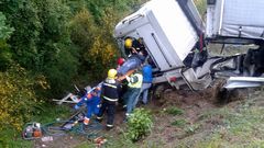 07 may 2012 Espectacular salida de vía en la autovía barbanzana Un camión se salió de la calzada y acabó sobre un barranco Simón Balvís / María Hermida