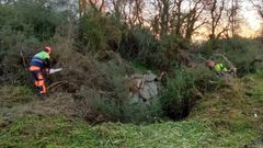 Los trabajos, que se centran en la retirada de árboles y ramas caídas, se realizan a lo largo de 350 metros, al paso por la parroquia de Santa María de Rutis