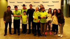 Alumnos con discapacidad intelectual que aprenden a jugar en la Escuela de Tenis Marineda, pudieron fotografiarse con su ídolo poco antes de la charla que impartió en Palexco