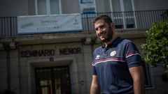 Un socio del equipo gijonés acude al entrenamiento de los lucenses para regalarle una mascarilla a su amigo Roberto, ex jugador del club asturiano y entrenador de porteros del Lugo