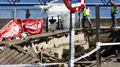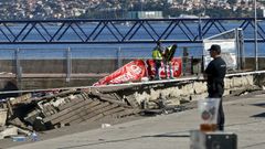 El levantamiento parcial del precinto y el desmontaje de las instalaciones de O Marisquiño permite ver el calamitoso estado de la senda marítima de Vigo. Ya nunca sabremos si se hubiese evitado el accidente con el arreglo a fondo de esta zona que Puerto y Ayuntamiento se negaron a acometer durante años