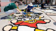 02 jun 2019 Explosión de color en la gran alfombra de Burela Una marea de voluntarios trabajó desde primera hora para crear los diseños inspirados en cómics y videojuegos M. CUADRADO