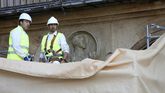 La pieza, con la inscripción «Franco Caudillo de España», será sustituida por otra para no romper la arquitectura de la Plaza Mayor diseñada por Alberto Churriguera