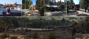 El fuego ha provocado a mediodía un nuevo corte de la autovía de Barbanza. Ayer se propagó desde al menos cinco focos, cortó la autovía, se acercó a depósitos de gas, amenazó el hospital y obligó a desalojar el polígono de Xarás. Sigue activo en las parroquias de Artes y Oleiros, pero ha sido «estabilizado» tras quemar 175 hectáreas
