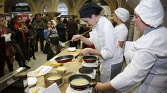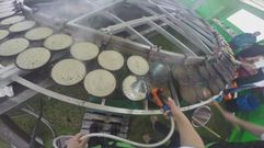 Nos ponemos en el lugar de Lucía, Andrés, Begoña o Miguel. Ellos son capaces de hacer 1.200 filloas por hora con la filloeira de Lestedo, un invento de Orlando Váquez que donde va, triunfa