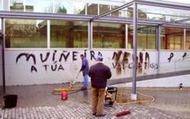 Los autores de las pintadas utilizaron doscientos kilos de fuel recogido en las playas de O Barbanza Las inauguraciones fueron suspendidas en el último momento