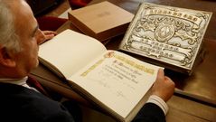 11 mar 2012 Dedicatorias que escriben la historia De valor incalculable, el primer tomo de firmas tiene tapas de plata y oro rocío pita parada