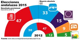 El PSOE logra más diputados de los que le otorgaban las encuestas y frena el avance de Podemos, que irrumpe como tercera fuerza con 15 diputados. Ciudadanos tendrá 9 representantes en el Parlamento andaluz, cuatro más que Izquierda Unida. Es la gran derrotada junto al PP, que pierde 17 diputados y se queda como segunda fuerza con 33 parlamentarios