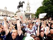 El almirante Nelson ha sido espectador de otra victoria inglesa sobre Francia. Miles de británicos celebraron ayer en la plaza de Trafalgar que su capital será sede olímpica en 2012