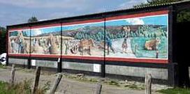 Un vecino de Monseiro ha pintado murales en las fachadas del establo, la palleira y el silo Las pinturas representan escenas de la malla, la emigración y las romerías gallegas