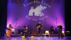 Irma Macías y Bieito Romero, junto con el hijo de este, Bieito Romero Diéguez, ofrecieron una clase magistral en el centro arqueológico Dolmen de Dombate