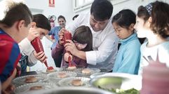 Guacamole de grelos, hamburguesa de bacalao al pil pil, carrillera de ternera con guiso de trigo y salsa de hongos... No es la carta de un Michelin. Son platos que Rubén García sirve en el menú del colegio de Soutelo de Montes. Porque, dice, «no es cuestión de presupuesto sino de voluntad»