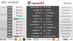 10 ene 2017 Horarios y televisiones para la jornada 25 de LaLiga 123 El Oviedo visitará al Mirandés el 12 de febrero Redacción