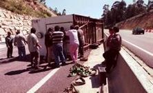 Los jóvenes fueron encontrados inconscientes en A Curota horas después del accidente La pareja de Santa Uxía de Ribeira cuyo coche se despeñó en la madrugada del Viernes Santo por un barranco en el monte de A Curota, continúa ingresada en el Hospital Clínico de Santiago de Compostela en estado de extrema gravedad. Al parecer, tanto el joven, que apareció fuera del coche varios metros más abajo del mismo, como la muchacha, que permanecía dentro, fueron encontrados inconscientes horas después de que se produjese el siniestro, debido a lo intransitado de esa zona montañosa.
