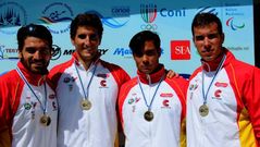 03 may 2014 Los gallegos Rodrigo Germade y Óscar Carrera, oro en la Copa del Mundo de Milán de piragüismo El equipo del K4 1000 español en el que compiten lo completan el asturiano Hernanz y el vasco Peña EFE