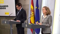 Moncloa tiene previsto sacar juntos a la rueda de prensa de este martes al vicepresidente segundo y a la vicepresidenta económica buscando ofrecer una imagen de unidad