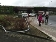 15 may 2016 Un coche tira una farola en la rotonda de Freixeiro No se produjeron heridos, pero los cuerpos de seguridad acudieron a regular el tráfico y limpiar la calzada R.P.P.