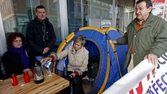 Un grupo de vecinos acampa en el exterior de la entidad mientras prosiguen las protestas en el consistorio de O Rosal y las oficinas de Cangas y Gondomar