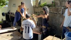 Juan Carlos I arribó a la casa de su amigo y anfitrión Pedro Campos a la hora de comer. Para entonces, quienes le esperaban ya habían devorado las viandas de mejillón, choco o atún obsequio de una panadería sanxenxina