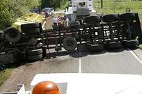 El vehículo transportaba un contenedor de residuos a las instalaciones de Sogama El conductor sólo sufrió algunos rasguños, pese a la espectacularidad del accidente