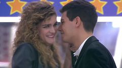 La joven pamplonesa se apartó ligeramente, entre risas, cuando el catalán quiso besarla en el chat de la Academia de «Operación Triunfo» tras interpretar juntos esa mítica canción