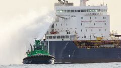 Parte de la tripulación fue evacuada el martes por la noche. Permanecen tres personas cerca del buque, que ha sido alejado de la costa a once millas con el fuego controlado, según la capitanía del puerto de Oporto